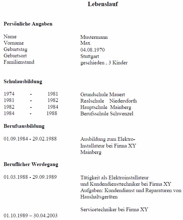 Zur besseren Verständnis haben wir zwei Beispiele von Lebensläufen, an denen wir das Prinzip eines guten Lebenslaufs deutlichen aufzeigen können.